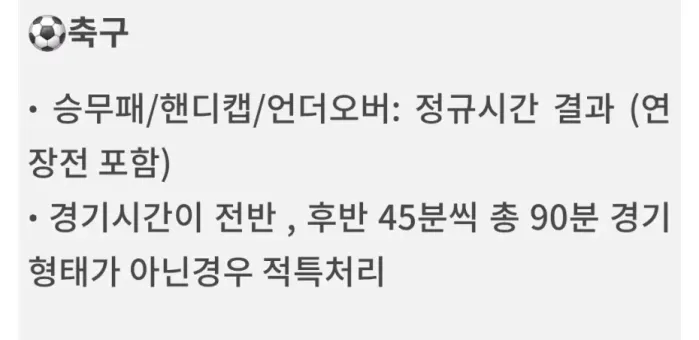 사이트 축구규정에는 언더오바/핸디캡 연장포함으로 되어있습니다
