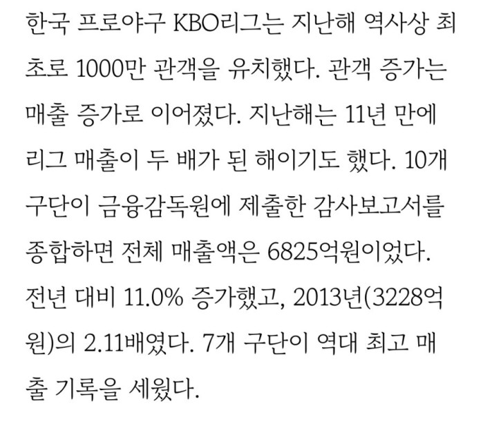 올해 사상 최초로 크보매출이 한국영화 매출 앞서겠네요