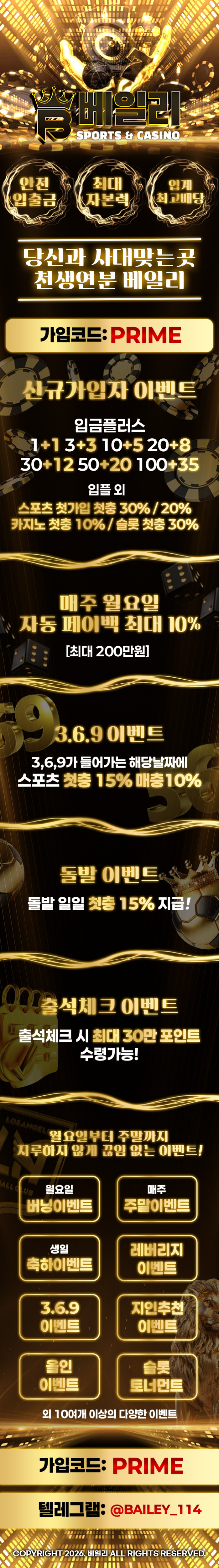 [베일리/보증1억원]업계 최대 자본력! 신규 입플 1+1부터 ~ 맥스 35%