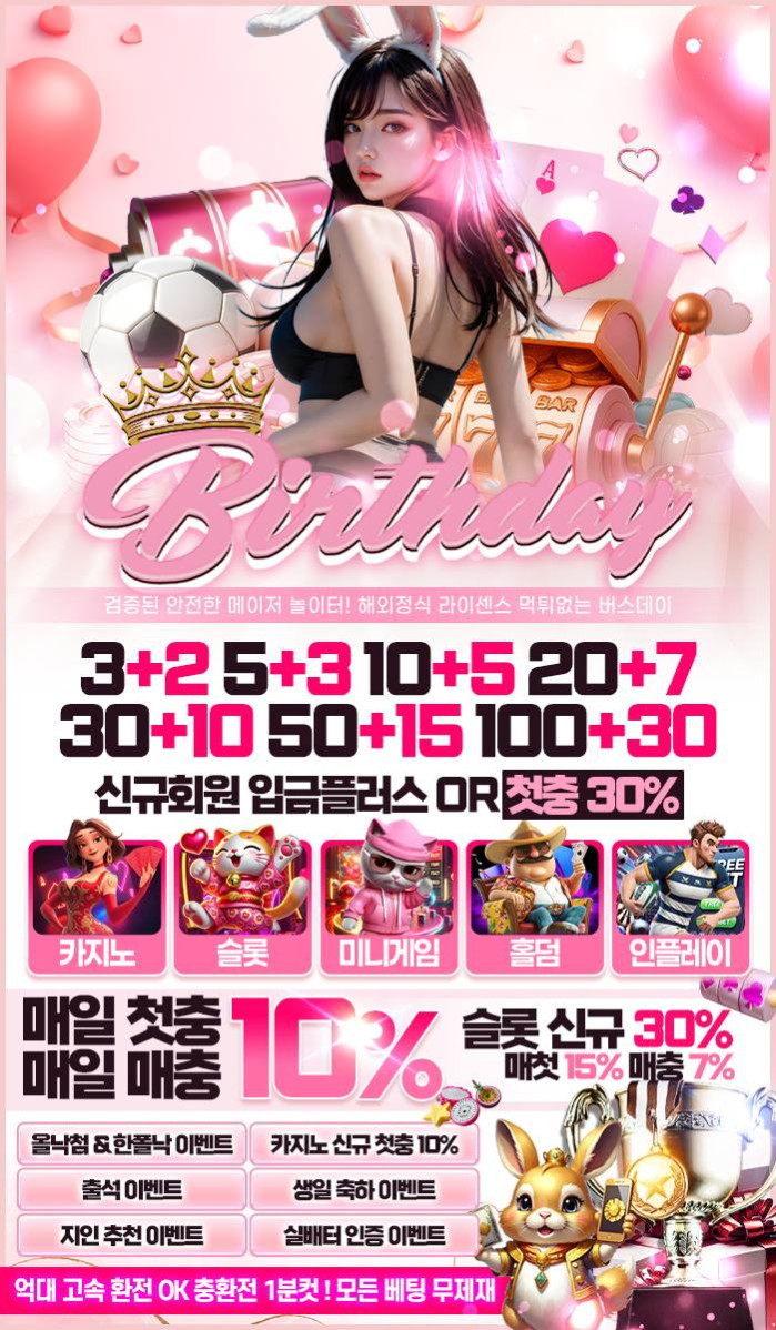 저희 벌스데이는 6년차 무사고 놀이터로써 항상 회원님들과 소통하며 신뢰하나로 버텨왔습니다 언제든지 문의하시면 신속하고 친절하게 응대하겠습니다❤️